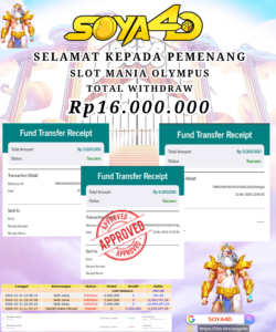SOYA4D BUKTI JP SLOT MANIA OLYMPUS Rp. 16.000.000, -LUNAS