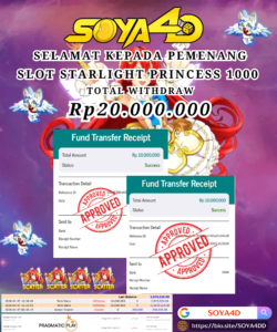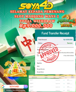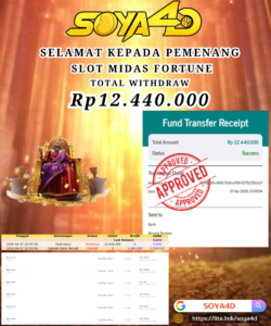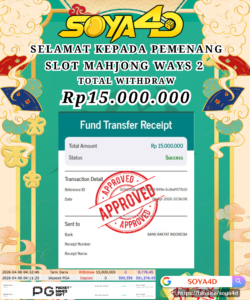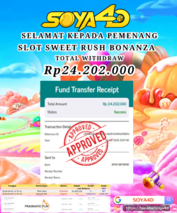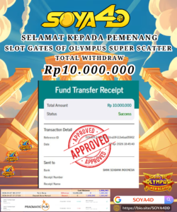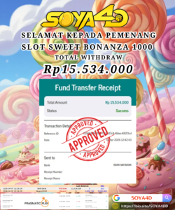Selamat kepada Userid : BEK**** Telah berhasil mendapatkan kemenangan besar pada permainan SLOT SWEET BONANZA 1000 . Dengan kemenangan Sebesar Rp. 11.000.000.-. Setelah mengisi formulir withdraw dengan kurang waktu hanya 1 – 10 menit pihak SOYA4D sudah melakukan transfer kepada pemilik user id. Dan dana sudah masuk ke rekening id tersebut oleh pemenang. Bukti pembayaran yang kami berikan merupakan bukti pembayaran yang SAH / VALID yang langsung di dapatkan melalui tanda transfer transaksi berhasil dari Bank yang di tuju. Kami juga mengucapakan banyak Terima Kasih Kepada pemenang karena sudah mempercayakan kami sebagai Bandar Tepercaya yang membayar semua kemenangan member hingga lunas.