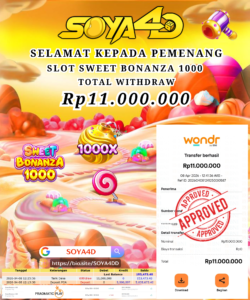 SOYA4D BUKTI JP SLOT SWEET BONANZA 1000 Rp. 11.000.000, -LUNAS