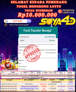 SOYA4D BUKTI JP TOGEL TOTO MACAU 4D Rp. 10.100.000, -LUNAS