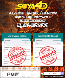 Selamat kepada Userid : SAM**** Telah berhasil mendapatkan kemenangan besar pada permainan SLOT MAHJONG WAYS 2. Dengan kemenangan Sebesar Rp. 20.499.000.-. Setelah mengisi formulir withdraw dengan kurang waktu hanya 1 – 10 menit pihak SOYA4D sudah melakukan transfer kepada pemilik user id. Dan dana sudah masuk ke rekening id tersebut oleh pemenang. Bukti pembayaran yang kami berikan merupakan bukti pembayaran yang SAH / VALID yang langsung di dapatkan melalui tanda transfer transaksi berhasil dari Bank yang di tuju. Kami juga mengucapakan banyak Terima Kasih Kepada pemenang karena sudah mempercayakan kami sebagai Bandar Tepercaya yang membayar semua kemenangan member hingga lunas.
