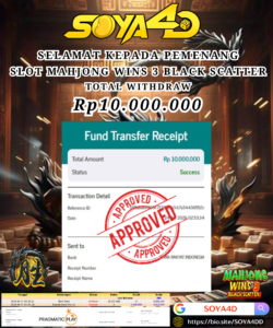 Selamat kepada Userid : FIL** Telah berhasil mendapatkan kemenangan besar pada permainan SLOT MAHJONG WINS 3 BLACK SCATTER . Dengan kemenangan Sebesar Rp. 10.000.000.-. Setelah mengisi formulir withdraw dengan kurang waktu hanya 1 – 10 menit pihak SOYA4D sudah melakukan transfer kepada pemilik user id. Dan dana sudah masuk ke rekening id tersebut oleh pemenang. Bukti pembayaran yang kami berikan merupakan bukti pembayaran yang SAH / VALID yang langsung di dapatkan melalui tanda transfer transaksi berhasil dari Bank yang di tuju. Kami juga mengucapakan banyak Terima Kasih Kepada pemenang karena sudah mempercayakan kami sebagai Bandar Tepercaya yang membayar semua kemenangan member hingga lunas.